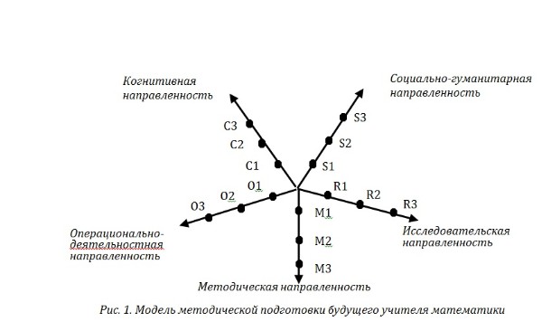 В результате была разработана векторная модель методической подготовки учителя математики, векторы которой характеризуют такие компетенции, как информационно-методологическая, социального взаимодействия, самостоятельной познавательной деятельности, самоорганизации и самоуправления, системно-деятельностная.